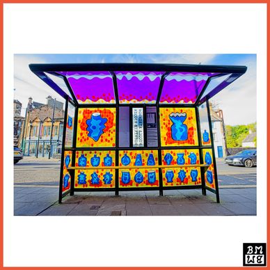 In 2024 she worked in Winchburgh, Scotland Creative Identity Framework, coming up with a unique concept of Winchburgh Historic Portals, which act as a gateway and record that links to something bigger and more detailed. Designing artworks which have been installed at the three sheltered bus stops on Main Street. The bus stops were a perfect site for the artworks, as a very important link between the Winchburgh community and the surrounding area. They are bright on a dull day and fantastic on a sunny day.