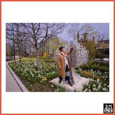 Her company Beautiful Materials Design Studio have exhibited at 17th Venice Architecture Biennale , V&A Dundee 2021. You can hear her talk on “Art Came in the Night”; a documentary on public art for BBC Radio 4 2022, presented by artist Kevin Harman. A example of her public artwork is The Memory Tree, 2023, at Aberdeen Union Terrace Gardens design by LDA Design. A memorial crafted in Scotland using high-grade stainless steel.
